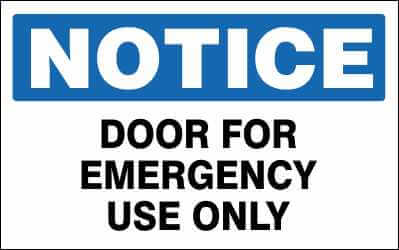 NOTICE - DOOR FOR EMERGENCY USE ONLY - NO145